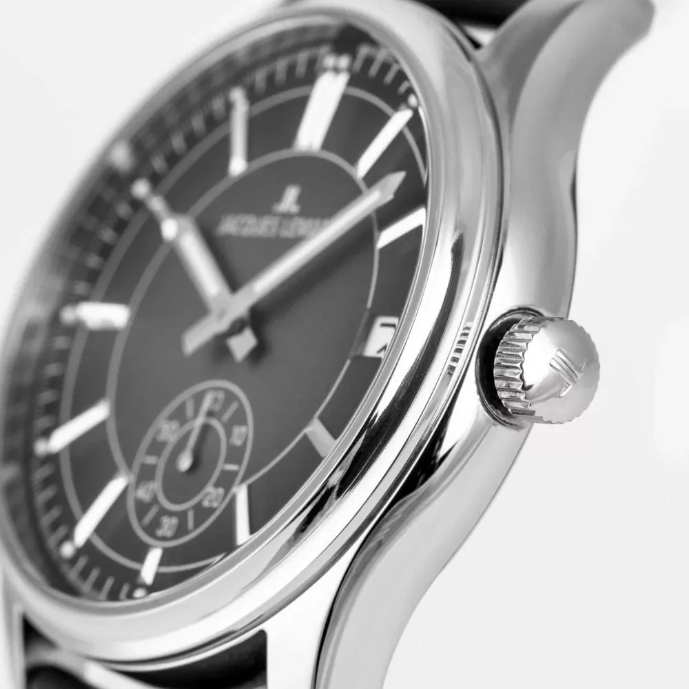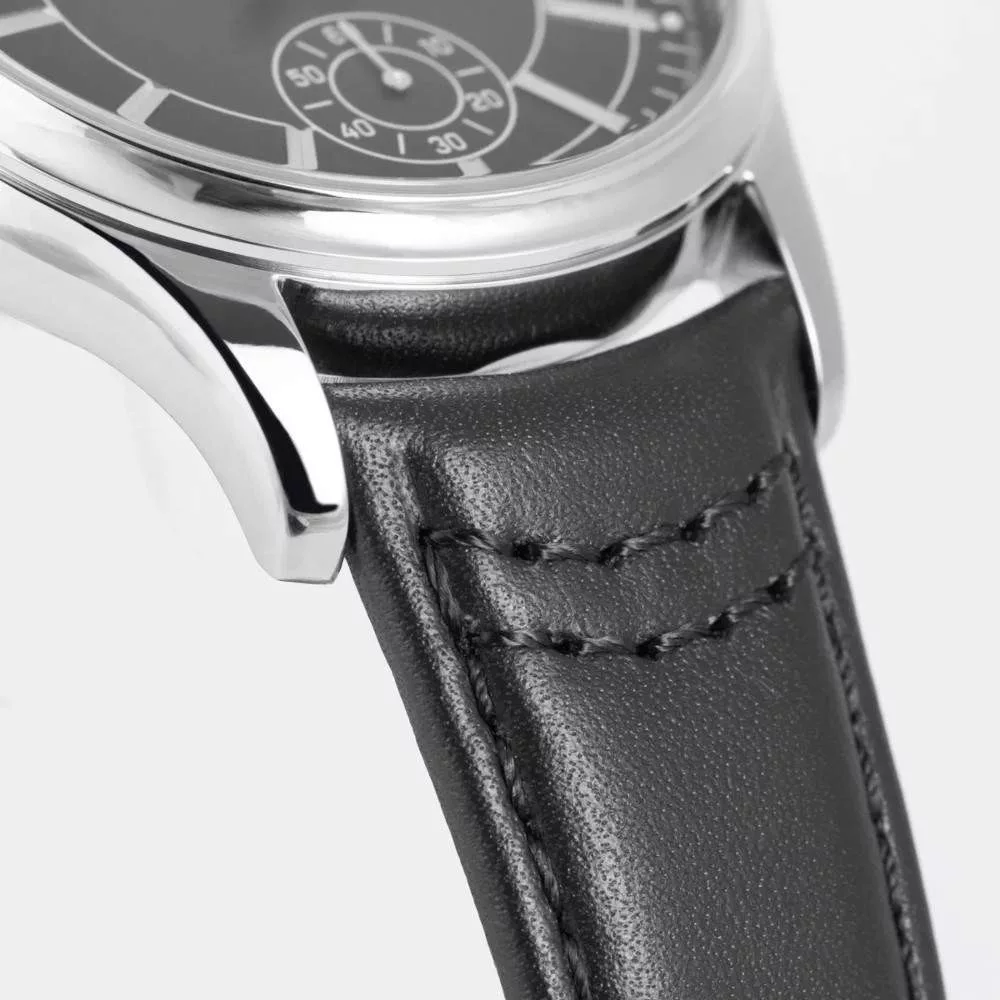 Fekete/sötétszürke színű számlap, kis másodperc és dátum kijelzéssel.