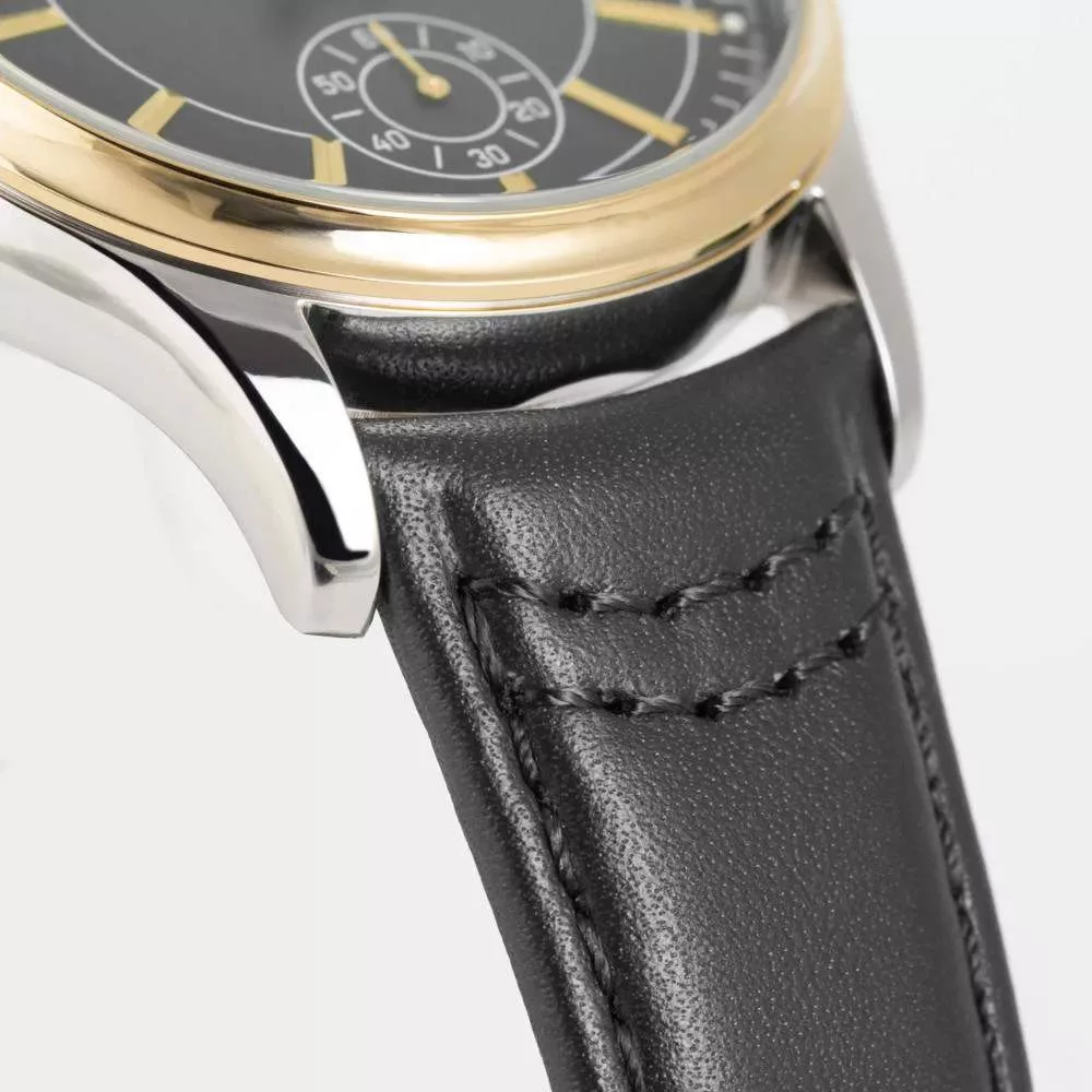 Fekete/sötétszürke színű számlap, kis másodperc és dátum kijelzéssel.