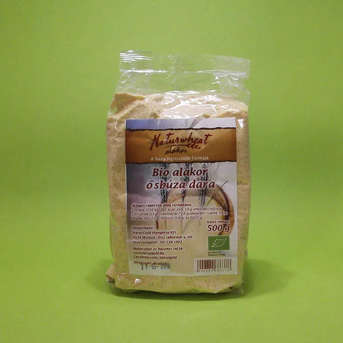 Bio alakor ősbúza dara. A legmagasabb energiájú gabona fontos aminosavak, antioxidánsok, és nyomelemek tárháza. Az alakor lizin-, mikroelem-, és esszenciális amiosav tartalma igen magas, szénhidrát tartalma alacsony. Nagy fehérje tartalommal, kiemelkedő sikértartalommal rendelkezik.